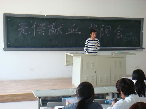 11月30日中午12点30分,英语系学生党支部组织的无偿献血咨询会在公一#104召开。会议上,英语系团总支青年志愿者队队长、全国无偿献血奉献奖金奖获得者刘必铮同学向来自全院各系志愿献血的学生介绍献血的相关知识。