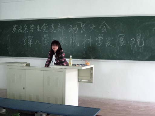 李婧老师会上,李婧老师首先向同志们传达了万象城官网学生党员深入学习实践科学发展观活动实施方案。她要求全体党员同志,首先结合自身实际,用科学发展观提高思想认识。其次利用科学发展观解决突出问题,为实现万象城官网“持续发展年”做出应有的贡献。第三,增强责任意识,强化实践锻炼和通过学习科学发展观促进健康成长。接着李老师重点介绍了英语系本学期深入学习实践科学发展观的主要活动计划安排。她说,从今天开展我系学生党支部深入学习实践科学发展观学习活动正式启动。学习大致分为三个阶段学习调研阶段(即日起-4月20日)、分析检查(4月21日-6月10日)、整改落实(6月11日-8月底,暑期期间以社会实践为主)。在学习期间,我系将在配合学院学习活动的前提下,还将会开展一次读书活动,组织一次主题讨论,进行“学习实践科学发展观”知识竞赛,实践“科学发展观,奉献爱心、回报社会”前埔小学支教,并配合学院开展的征文大赛,及开展一次“科学发展观”网络媒体学习会等等一系列活动。