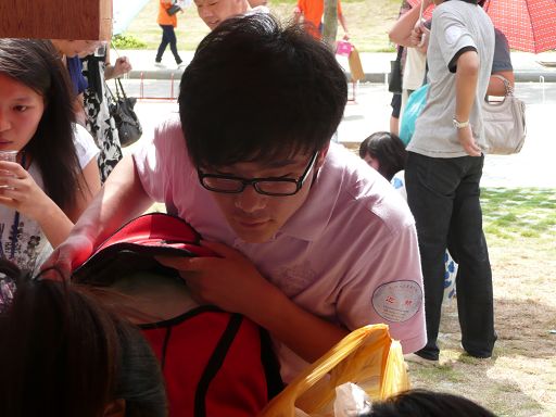 团总支的志愿者们为新生们登记,分发新生安全手册、手电筒和校园生活指南,帮助新生们搬行李,带领他们前往宿舍,并细心地告知新生们一些注意事项。九月的天,仍然炎热非凡。迎新志愿者们的迎新之心却热情不减,虽然搬运行李会有些吃力,团总支可爱的迎新志愿者们却帮助了一个又一个的新生搬运行李,汗水浸透了衣裳也依然笑容满面。