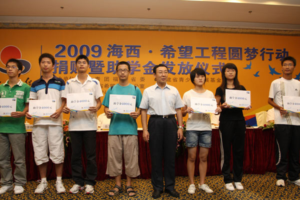 8月31日,由共青团福建省委、福建省青少年发展基金会联合主办的“2009海西•希望工程圆梦行动”捐赠暨助学金发放仪式在福州隆重举行。