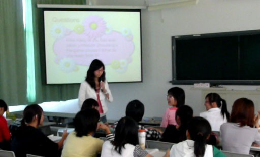 此次会议的亮点不仅仅是用中英文探讨科学发展观,而且还吸引了07(1)班辅导员助理王敏等同学的积极参与,他们也热情洋溢的参加了此次研讨会。