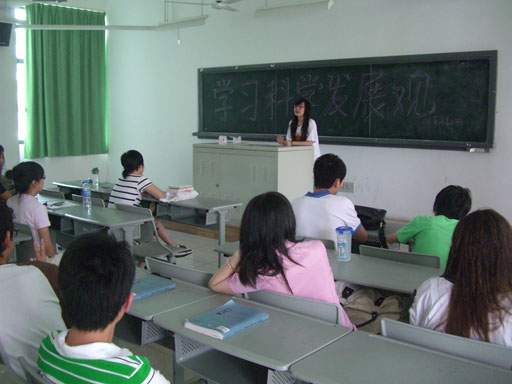 为了响应我系党支部深入学习实践科学发展观的活动,加强支部成员对科学发展观的了解,以及提高理论联系实际的能力,英语系06级(2)班团支部于2009年6月12日在公一#118举行了学习科学发展观的学习活动。本次活动由团支书张思娜同学主持。