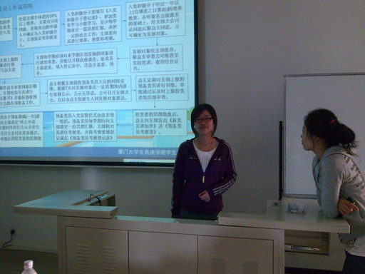 为响应班级同学积极入党的热情,厦门大学嘉庚学院英语系08级(1)班特召开入党流程培训讲座。