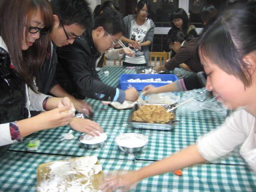 2009年12月22日,正逢二十四节气中一年一度的冬至佳节,英语系09级1班团支部全体同学欢聚于南区食堂四楼,踊跃地参与到冬至汤圆饺子的制作活动中来,同学们的热情丝毫没有受到寒冷的天气的影响,活动现场不时笑声起伏,俨然有一种温馨的家庭氛围。