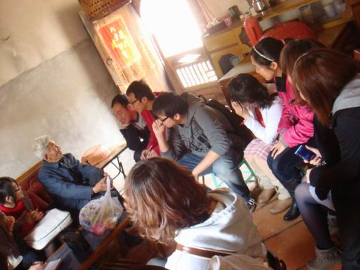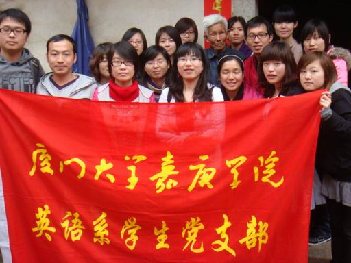 4月14日下午2点30分,为响应“廉洁修身,树立党员阳光形象”主题活动,英语系学生党支部07级15名学生党员在团总支书记李婧老师的带领下,来到大径村拜访了邱其福老党员。学生党员们认真和老党员同志进行了交谈,一同回顾历史岁月,受益匪浅。