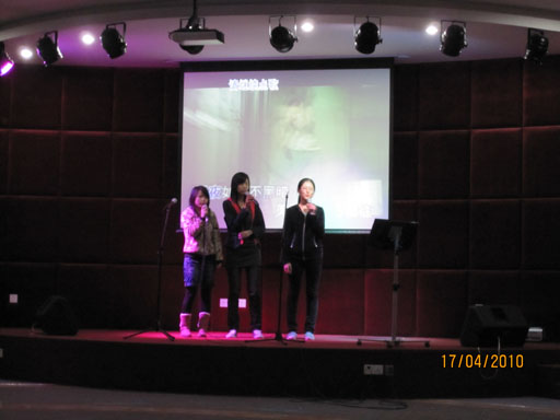 “部门成员歌曲串烧”,“我爱记歌词”,更有英语系自己乐队带来的“异国歌曲”……不管是经典老歌,还是“异国风情”,都可见同学们很用心的在唱,为此次活动带去自己的一抹红。最值得一提的环节是“我爱记歌词”环节,四个部门的成员们开始了一场“歌词智慧大比拼”,激烈的竞争之后,秘书部以高分拿下了本环节的冠军。