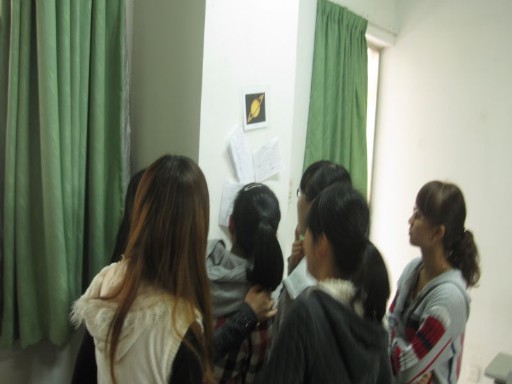 此次班会分为三个部分进行:1.全班分为8个小组进行讨论.讨论的内容是小组所拿到的行星的照片,然后用英语写下有关这行星的信息,并且通过交换照片轮流对各个行星进行描述! 2.各个小组将自己组所写的有关行星的信息贴在该行星照片的下面.全班同学进行浏览,欣赏和学习. 3.每组做一个总结--在看了其他组所提供的内容后学到了什么新的内容时间一分一秒的过去,同学们的热情却不断高涨在彼此的讨论与交流过程中,大家也不忘开开玩笑,聊聊家常,彼此的感情又进一步的加深了!