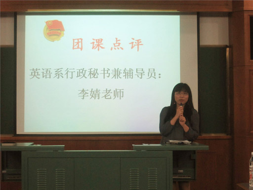 英语系行政秘书兼辅导员李婧老师对本次团课作了个人点评,着重表扬了两系同学们的优良表现并再次重申“培养更多优秀青年在成长道路上不断前进”这一团课总之,为党组织培养更多积极向上的青年。