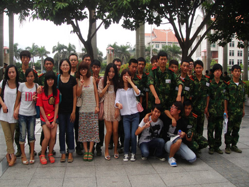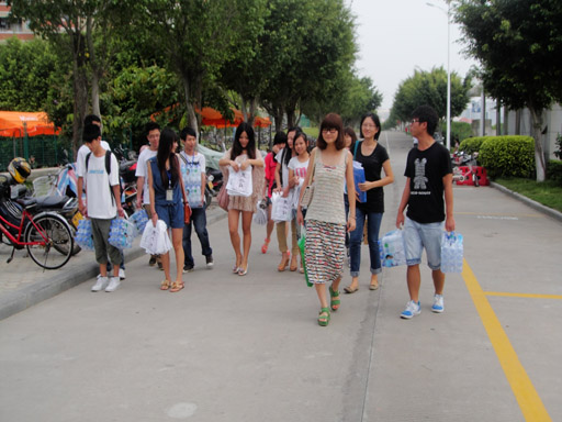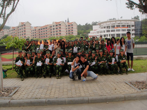 2011年9月19日,艳阳高照,新生们穿着墨绿的军服,迈着整齐的步伐,随着一二一的口令,在操场上挥洒着汗水。在齐步、正步、跑步这枯燥又漫长的训练之间,英语系团总支给他们送来了慰问,带来了惊喜。