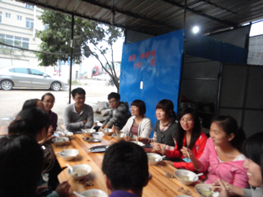 到了汤头村,女孩子们聚在一个大池里相互聊天搞怪,在这个团支部成立两年多得集体里,大家第一次在这么放松的状态下相互聊天搞怪,为自己的大学生活增添了不少美好的回忆。泡完了温泉,许多同学都已经饥肠辘辘,在班长的带领下,大家有找了村里的一家鸭面点补充能量。二十几个人齐聚在这家不大的店里,围城一桌,大家玩游戏,相互开玩笑,气氛好不热烈。