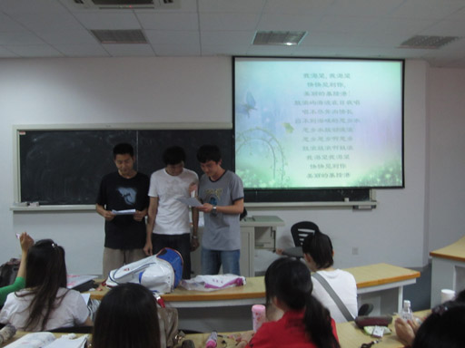 2011年4月27日下午,为响应学院号召,提高同学们对海西建设的热情, 英语系09级一、三、四班齐聚一堂在经管311教室举行了题为 “太武潮涌,红动海西”的主题班会。