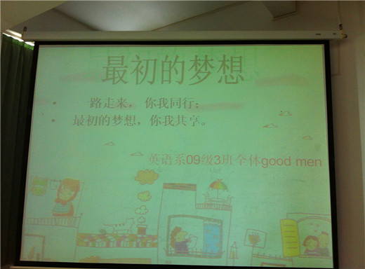 “青春转眼即逝,大学时光匆匆而过;带着最初的梦想,我们一起飞翔。”伴随英语系09级3班团支书张莉莉的开场白,英语系09级3班团支部以“最初的梦想”为主题的班会在一个阳光明媚的早晨于公一310拉开了帷幕。