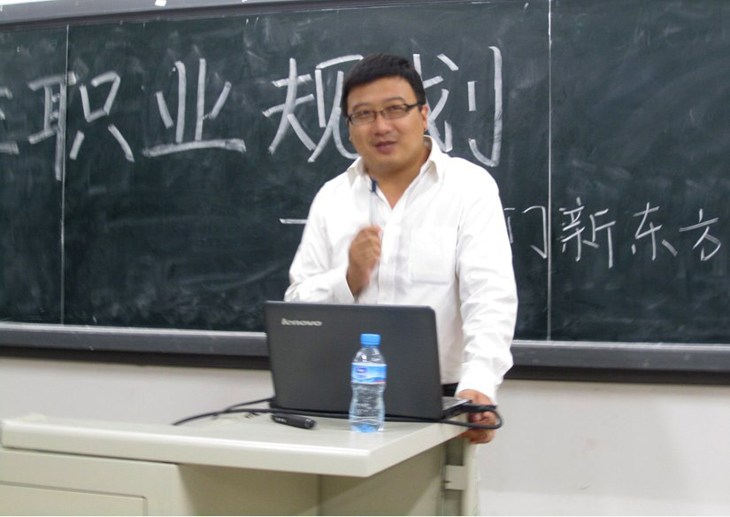 首先,由厦门新东方学校校长刘烁炀作开场讲话。讲话中,他与在座的同学分享了自己在新东方艰苦打拼的九年历程,并指出新东方旨在培养有爱心、有能力、有责任感的优秀教师。他还以多年的工作经验告诉即将踏入职场的大四学生们找工作的三大维度,即行业、领导与团队。他认为高能力的人才才能赢得高工资,一位好的领导的责任便在于提升员工的价值并带领整个团队始终保持积极向上的精神状态。