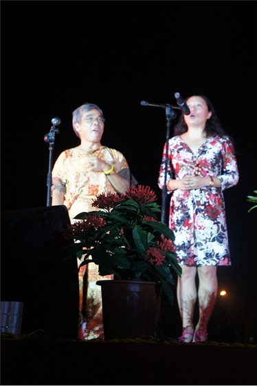 我系排在第五个上场。一开场,便是系主任杨昆与外籍教师Steve的一段诗歌朗诵。杨昆老师与Steve一句中文一句英文,俩人默契配合,一下便让人感受到浓浓的英语系特色。11级的同学们虽然都是第一次在大学中参加这样的集体活动,但是他们在场上镇定自若,发挥自如的样子,让我们台下这些学姐学长着实佩服不已。