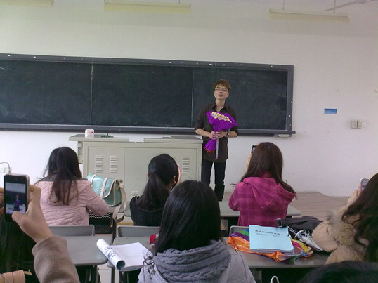在班长的一番简短的发言中,我们终于弄明白了。3月7日——一个属于女生们的节日。班里仅有的三位男生,决定一同给班里的女生们送上女生节的祝福和礼物。但是由于明天没有大家共同上的课程班,男生们便决定提前一天为女生们送上节日的祝福。听完班长的话,班级里顿时响起了热烈的掌声和欢呼声。