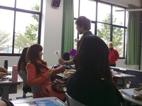随后,班长作为代表,亲自为班级里的各个女生送上了诚挚的女生节祝福和费列罗巧克力。班级里弥漫着幸福而又温馨的味道。