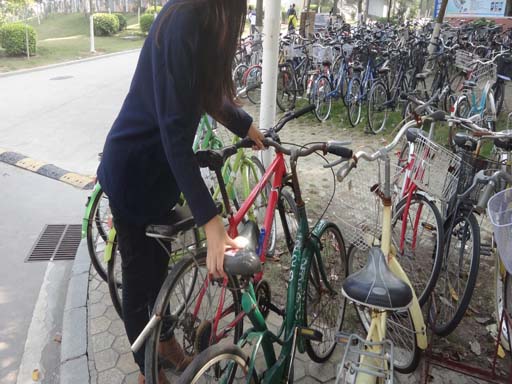 等待“小绿”使用高峰期到来的同时,我班同学先稍微整理了停车处原有的乱停放自行车,确保在同学们停放“小绿”时有方便较近的停车位可用,避免“小绿”因为没有停车位而被无序停放。11点40分过后,陆续有下课后的同学骑着“小绿”返回园区。大部分同学都能把“小绿”好好排放整齐。我们只见到非常少数的人随意停放“小绿”,在这种现象发生时,我班该路段负责的同学立刻上前摆放好小绿并确保随意停放的人明白自己的错误行为。直至活动结束,无人再随意停放小绿。