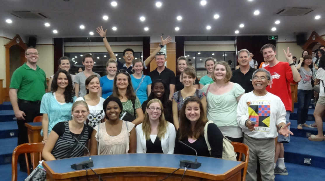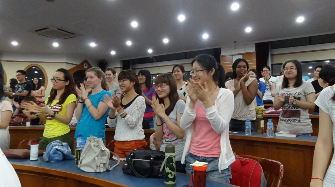 首先,由美国来的26位老师和同学们为我们带来了一首茉莉花,掀起了交流会的第一个高潮。随后,交流会便正式开始。此次交流会以自由谈论的方式进行,分别由万象城官网学生和美国学生提出问题,双方互相做出解答。在此环节中,中美学生就教育制度、如何学习英语、以及对两国的看法进行了激烈的对话。中美同学的幽默和对问题的多角度回答为此次交流会带来持续不断的掌声和欢笑。
