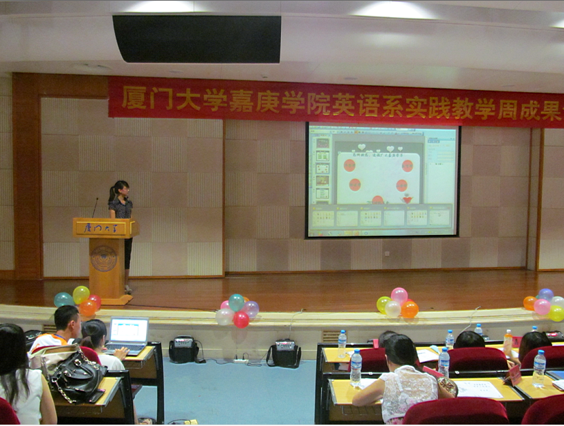 7月19日上午9:00,英语系实践教学周成果汇报展示会在主3小报告厅举行。此次展示会是对两周的实践教学的总结,也是同学们辛勤努力的最好的见证。英语系执行主任杨昆老师,英语系辅导员兼行政秘书陈毅超、李婧老师,以及英语系黄卓静老师、孙佳妮老师、郑宇帆老师、陈智淦老师、孙艳老师、高仁仁老师、黄丽香老师、卓文如老师、王淑娥老师都纷纷到场支持此次活动。