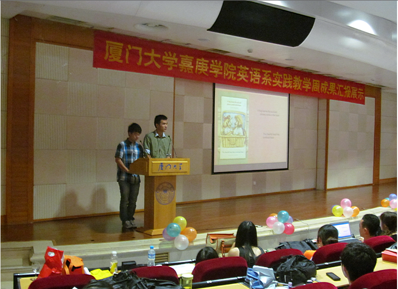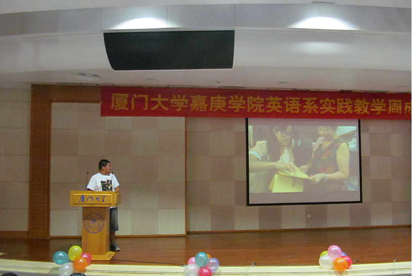 区别于低年级的同学,对于大三的学生,实践项目就更为注重语言能力的应用,对口笔译及商务方向的技能都有系统的实践,在展示过程中也能看到同学们在短短两周的时间里的提高。其中由王淑娥老师指导的商务场景模拟更是在学习的过程中收获爱心。学生们从实践周开始时仅有的250元本金,经过同学们的辛勤努力,到最后的1800多元的收益,这些都是同学们用心努力赚来的精彩。并且,收益的70%将代表英语系捐给西部需要帮助的孩子们,30%将作为下一届学生的启动资金。相信同学们都会把这两个月的酸甜苦辣一直保存在心中。由王迪老师指导的职业生涯与规划模块,便突破了传统对职业生涯规划的印象,将模块内容落实到了实践中。第一周同学们主要是对职场的定义,如何适应职场,简历的制作,面试技巧等基础性知识进行了学习,到随后过渡到第二周实践的应用。第二周主要是进行电视广告创意大赛以及实践汇报演出的相关工作。同学们别处心裁的为广告定名为“爸儿乐”奶粉,在展示过程中,同学们为我们详细的解说了此广告创意的构思,创作过程及组员的分工。值得一提的是,在创作过程中,同学们并没有照本宣科,而是有创意的有思想的将一些原理和日常生活中的艺术运用到广告中,例如伏笔原理,以及泉州特有的提线木偶传统手工艺。也许这样一个创意广告并不会对将来求职带来多大的帮助,但是创作广告的过程里,同学们收获的艰辛及感动,定会在未来的学习生活中得到升华。