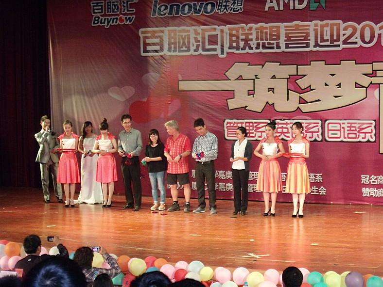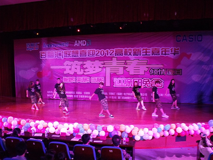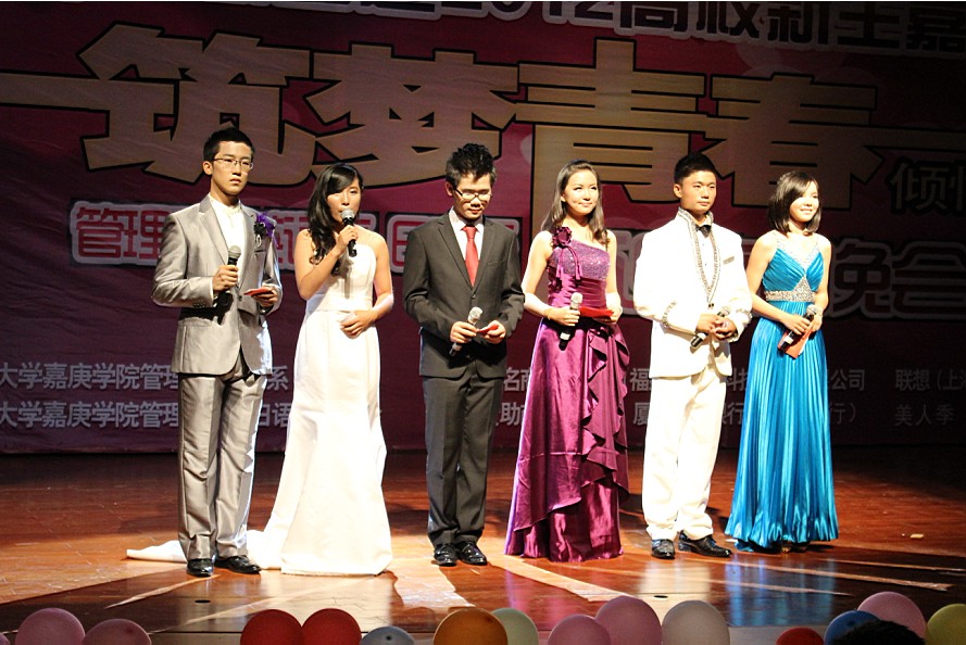 2012年10月19日晚,为了迎接嘉庚新生的到来,由嘉庚学院英语系,日语系,管理系三系主办的迎新晚会于主楼群3号二楼大报告厅隆重举行。出席此次晚会的嘉宾有各系辅导员老师、学生代表和各赞助商代表。此次晚会为新生提供了才艺展示的舞台,同时也丰富了他们的课余生活。