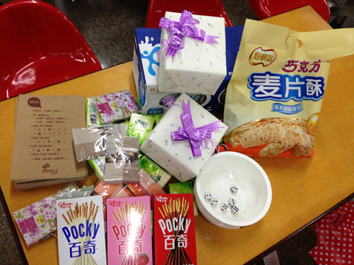 入乡随俗,英语系11(3)班的班委们为了给同学们带来一份温暖和节日的气氛,在9月16日举行了中秋博饼活动。班委们提前一天都超市采购牛奶,马克杯,麦片,笔记本等礼品。16日晚上9点大家齐聚南区食堂开始博饼。博饼进行了三轮,大家其乐融融,非常开心。最终,华晓倩同学博得了状元,获得一箱牛奶。李晴同学和蔡雅娟同学博得了对堂,获得了马克杯。每个同学都有拿到小礼品。