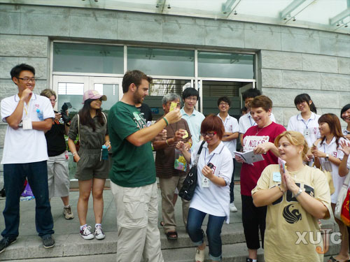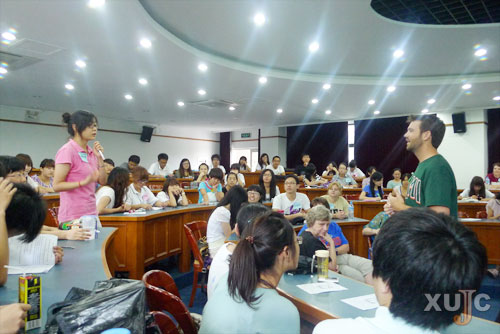 6月11日,英语系与美国中佛罗里达大学口语俱乐部(ACEC,University of Central Florida,U.S.A)举办了English Camp(英语营)活动。 尽管当天上午风雨不期而遇,但这没有阻挡来自美国中佛罗里达大学口语俱乐部的教师和万象城官网学生沟通交流的热情。英语系学生特地披上“英语系欢迎您”的绶带,迎接来自美国的友人。当天参加此次活动的学生总共55名,不仅有英语系的学生,还有来自电子商务系、电子工程系、国际经贸系等院系的同学。 美国中佛罗里达大学口语俱乐部的老师们将参加活动的学生分成四个小组,在公共教学一号楼的四间教室里同时进行“责任”“信赖”“关怀”“尊重”英语营地趣味主题活动。主题活动旨在启发学生对自身品质与友谊内涵的思考。活动中,同学们通过角色扮演恰当地使用英语语言,提高角色责任感。老师们还与同学们进行了游戏互动,例如把其中一位学生的双眼蒙上,其他学生用英语提供各种提示,让这位蒙住眼睛的同学依据提示找到目的地。游戏环节使活动气氛活跃,教室里传来阵阵欢笑声和掌声。上午的营地活动结束时,美国老师和同学们一起合照,并送给同学们带有佛罗里达标记的球衣、球帽和其他小礼物。 下午,来自美国的老师们为万象城官网师生做了主题为“真爱五种语言”和“通向成功的秘诀”的讲座。讲座中,美国老师鼓励同学们踊跃提问。讲座结束后,仍有许多同学意犹未尽,与美国老师留下了电子邮箱等联系方式,方便今后进一步交流。 英语系执行主任杨昆表示,这类紧扣主题的新兴语言活动形式为同学们提供了英语学习的机会,开拓了大家的视野。 |