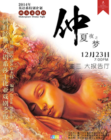 12月23日19:00・主楼群三号楼大报告厅――回归经典英语系莎士比亚戏剧之夜《仲夏夜之梦》。