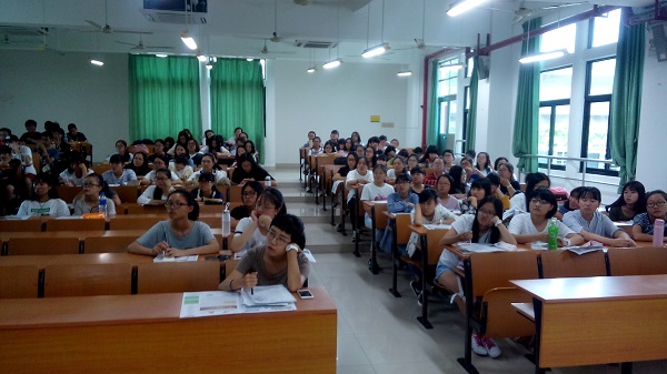 雷主任在上完午课后,不辞辛劳立即赶到会场和大家见面。雷主任在简要地介绍了自己之后就进入主题,他用简洁干练的语言,绘声绘色地向同学们介绍了当下国内高校英语系专业的开设情况和发展趋势,分析了英语专业学生的就业前景、就业方向。借助俞敏洪、马云、龙永图的经历,雷主任激励同学们努力学好英语,打好基础。演讲中途,雷主任朗读了一段耶鲁大学校长的一段话,勉励同学们勤奋学习,综合发展,并借机对同学们提出了一些要求,同时希望同学们平时注重提高表达能力和亲和力。在讲座结束前,雷主任对新生们提出了一些期许,希望同学们应该具备以下特质:1、有很强的好奇心和求知欲;2、有很强的自我学习和探索能力;3、有广博而扎实的专业知识,有较高的专业水平;4、具有良好的道德修养、能够与他人合作或共处;5、有健康的体魄和良好的身体、心里素质,能够承担艰苦的工作。此外,他还希望大家在大学期间能培养一两门兴趣爱好,鼓励大家早上坚持晨读。