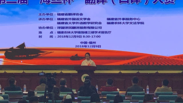 “译国译民”杯海丝翻译大赛由福建省翻译协会主办,福建省大学外语教学研究会、福州大学外国语学院和译国译民翻译服务有限公司联合承办,今年已经是第二届赛事。大赛的宗旨是促进福建省翻译事业繁荣与发展,进一步满足福建作为21世纪海上丝绸之路核心区日益扩大的对外交流需求,营造良好的对外开放语言环境,培养、储备“一带一路”建设所急需的高素质语言服务人才。