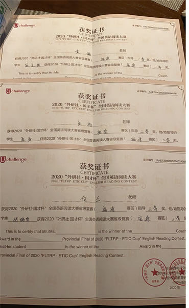 11月7日至8日,2020“外研社·国才杯”全国英语阅读、演讲、写作大赛(福建赛区决赛)在福州工商学院举行,我校awc777万象城娱乐官网教师何兰、林杨琼和官晓勤分别带领阅读比赛、演讲比赛、写作比赛三支学生队伍参赛,共获得8个奖项。其中一等奖1项、二等奖4项、三等奖3项。