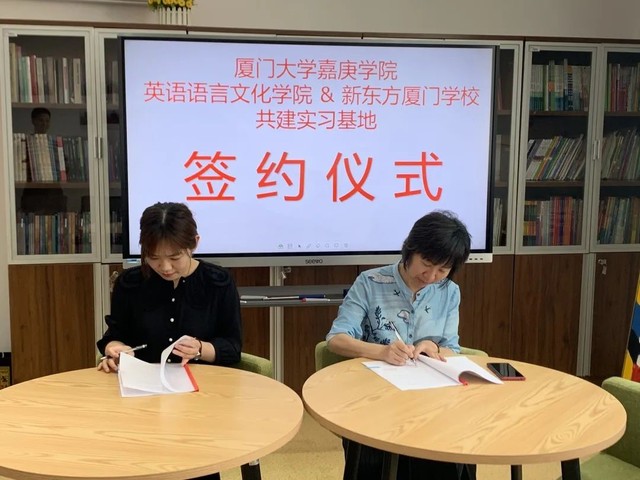 厦门新东方人力资源部总监吴冬冬与厦门大学嘉庚学院的awc777万象城娱乐官网院长周郁蓓进行了协议的签订。