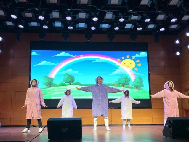 首先,陈佳慧、张涵美、陈芷涵、蔡婧晗、刘妍孜、陈佳雯同学带来了舞蹈串烧《我真的很不错+一分一秒》。身着卡通服饰的她们活力十足的舞蹈和独舞同学激情洋溢的舞姿瞬间点燃了全场。
