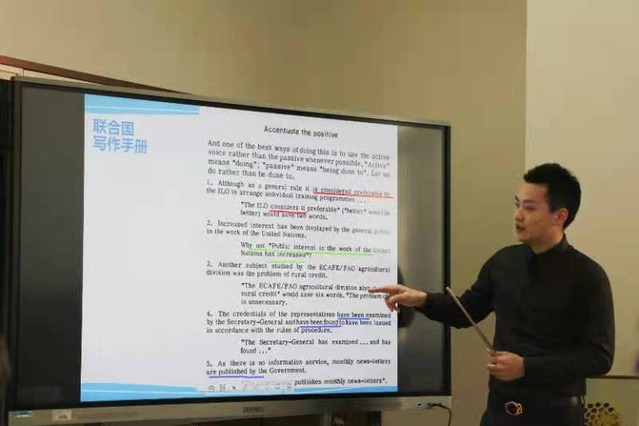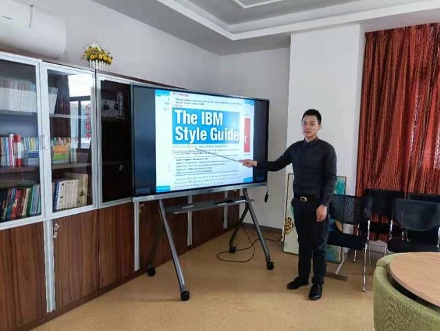 随后,余胜老师对简明英语运动及简明英语做了详细介绍。他表示,简明英语始于英国,在主要英语国家的政府、高校、企业等机构受到大力支持与推广,并解释,简明英语即适当、清楚、读一遍就懂、并非幼稚或过分简化的英语。同时,他也提到了使用简明英语的意义是为了节省时间与金钱,让更多的人看懂。