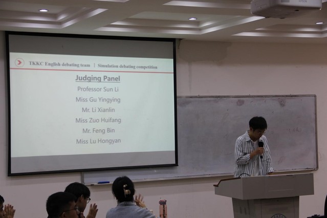 三月初,一场由厦门大学嘉庚学院英语语言文学院英语辩论赛团队举办的英语辩论赛在经管楼207教室拉开帷幕,此次辩题为“The House believes that high school students should be discouraged from studying abroad.”本次英语辩论赛制采取的是英国议会制,按照赛制,共有八名选手参赛,两人成队,共四组,分别代表政府方和反对方对辩题展开辩论,选手身份均抽签决定。与此同时,本次活动邀请了6名来自英语语言文化学院的老师,由陆红艳老师负责,其他6位老师包括孙力、左慧芳、辜莹莹、丰斌、李先林、陈柏(场记)老师任评委。