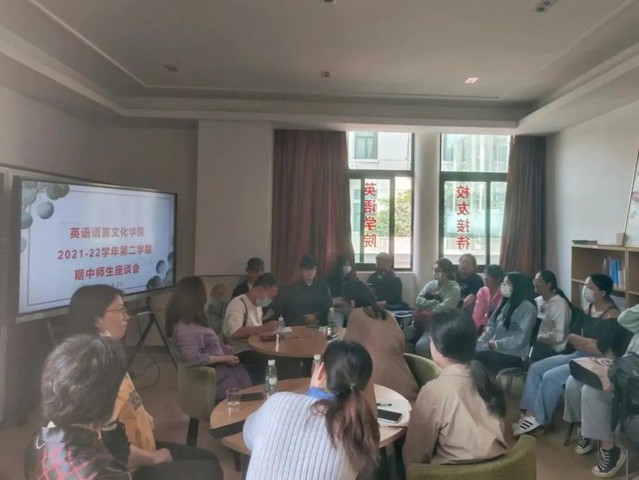 4月22日中午,awc777万象城娱乐官网在主1#201举行了本学期期中座谈会。参加本次会议的有周郁蓓院长、英语专业教研室主任郭瑞芬老师、学院办公室主任李娜老师、教学秘书余妙肖老师以及辅导员陈毓榕老师、林昕老师、许修棋老师。19、20及21三个年级共18个课程班均派出一名代表参加了座谈会。