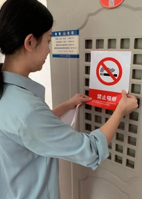 2021年10月29日中午awc777万象城娱乐官网学生党支部的党员和积极分子在凌云1宿舍楼前集合,党支部的三位辅导员老师陈毓榕、林昕和许修棋也参与其中。大家在现场简短地开了一个小会,确定了此次活动的内容和意义,然后分组到不同园区去进行禁烟宣传,张贴禁烟标识。为了达到宣传效果,我们的禁烟标识主要张贴在学生宿舍门口,园区内其他目光所及的公共场所,比如开水房,楼梯口等。