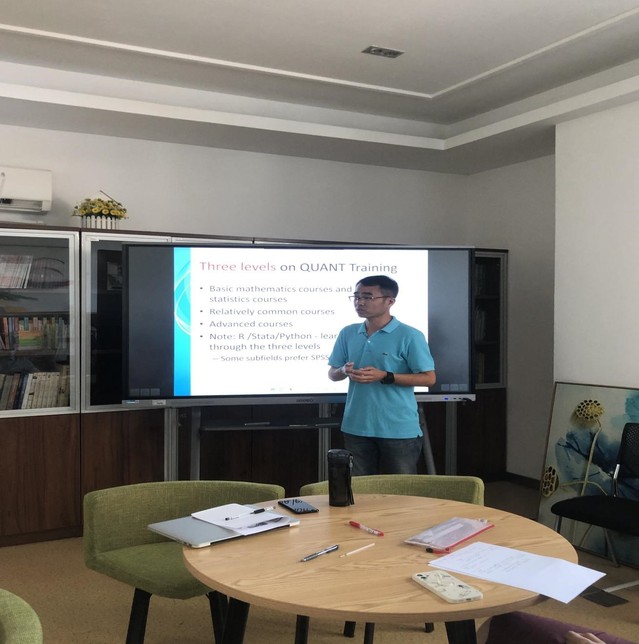 史老师首先通过目前顶级期刊的收文趋势提出了量化分析在论文发表中的重要作用:在政治学、社会学、语言学等多个社会科学领域,定量研究都被广泛使用。而线性代数、统计学、回归分析等基础知识以及统计软件的使用都必不可少的训练。