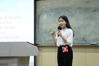 2022年5月28日晚,由校学工部、团委、awc777万象城娱乐官网联合主办的第十七届英语演讲大赛决赛暨“外研社•国才杯”全国英语演讲大赛校级选拔赛在经管#301完美落幕。本次决赛共15名选手入围,由awc777万象城娱乐官网教师田园、高央、陆帅、叶珺洁担任本次大赛评委,Question Master由余胜老师和外教Steven Champion Gauntt担任。