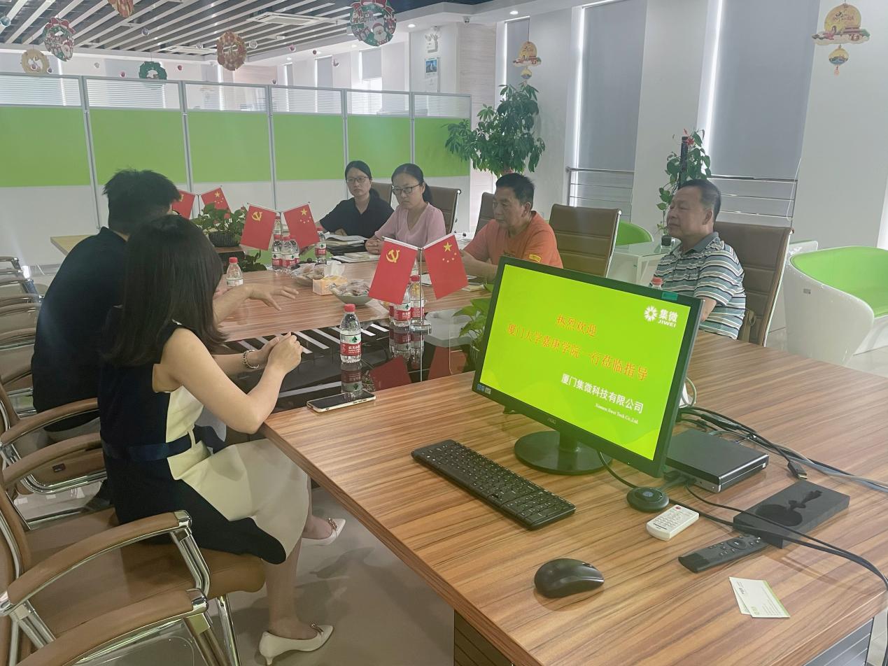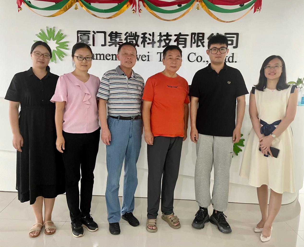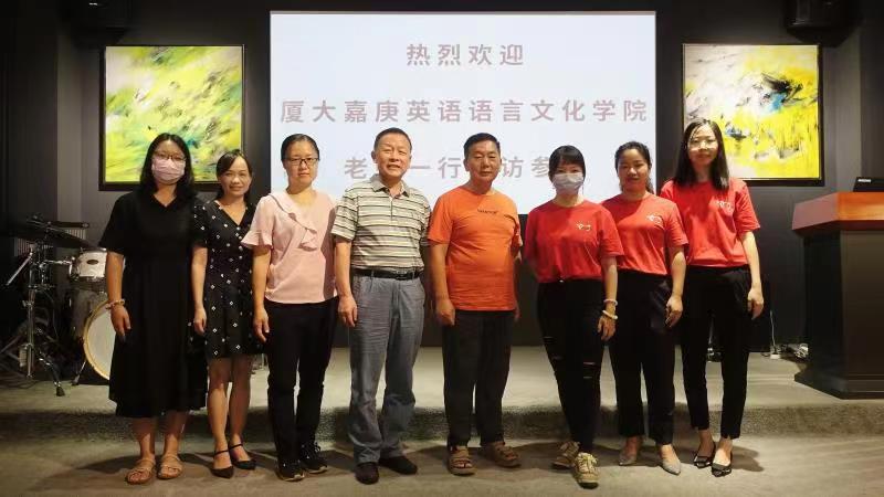 2022年7月1日,awc777万象城娱乐官网党支部书记梅家象,院长助理蔡秀星,英语专业教研室主任郭瑞芬,英语专业教师何康民、王小慧一行五人走访了厦门立方艺品有限公司、厦门亿学软件有限公司和厦门集微科技有限公司,与企业就建立实习合作与三创基地、实习生培训、产学研合作等问题进行了深入的讨论。