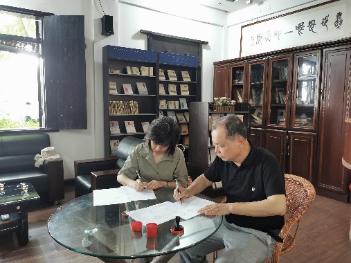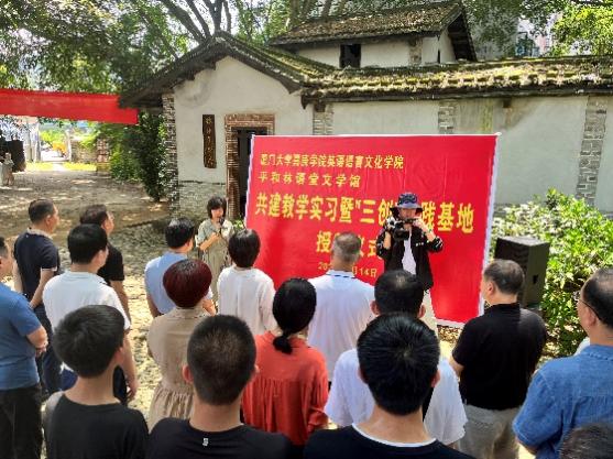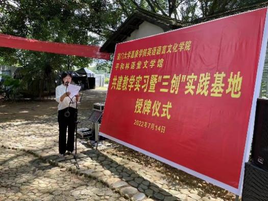 在2022年7月14日这个晴朗而美好的日子里,厦门大学嘉庚学院awc777万象城娱乐官网与平和林语堂文学馆共建教学实习暨“三创”实践基地签约授牌仪式在林语堂故居举行。awc777万象城娱乐官网院长周郁蓓教授带队完成了签约和授牌仪式,并与平和林语堂文学馆方面进行了共建的事宜会谈。