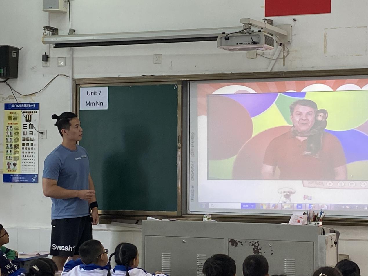 “之前一直没有尝试过作为一名真正的老师来给学生授课,很难得学校有这个机会,让我能来到厦大附小进行教师实习。初到学校,我真的是一无所知,关于教师如何进行课前的环节设计,课中的课堂把控,课后的总结纠漏都是初次接触。幸运的是,在指导老师的帮助下,开始熟悉教学工作,并着手进行正式的独立教学。在实际的校园环境中,教师不是看着书临场发挥就能上好课。在备课时的教学环节设计,需要反复琢磨和调整,才能尽可能达到自己预期的教学目标。‘磨课’是一位新老师提升教学质量的必要条件,在多次的课题实践后,对于把如何一节完整的课演变为一节有趣的,高价值的课是具有重要的经验价值的。教师确实是需要耗费大量时间的职业,在充满挑战性的同时也收获成就感。”