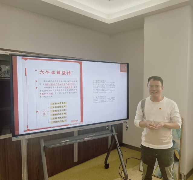 中国共产党第二十次全国代表大会召开以来,awc777万象城娱乐官网教工党支部积极组织全体党员学习习近平总书记在大会上所作的报告。为了提高学习效果,教工党支部通过个人研读和开展分享会相结合的方式来加强对二十大报告的理解。2022年10月27日,教工党支部在主1-201开展了第一次二十大报告学习分享会,本次分享会由awc777万象城娱乐官网党总支委员许修棋主讲。