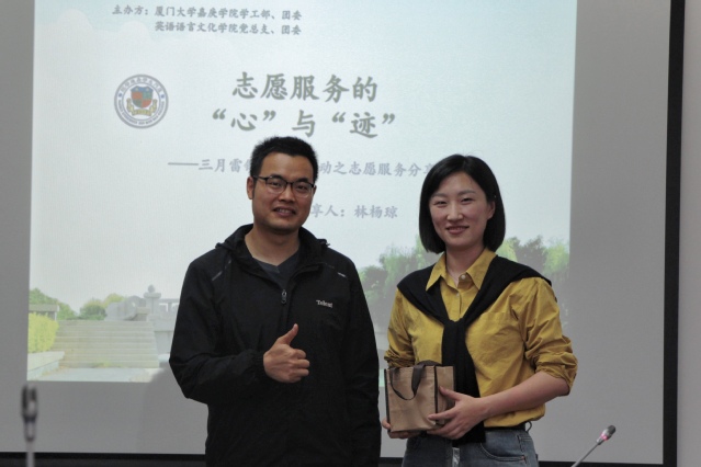 2023年3月22日下午,林杨琼老师在主3#809给同学们作了一场题为“志愿服务的‘心’与‘迹’”的分享会。林老师是厦门大学第九届研究生支教团队员,在艰苦的西海固地区坚持了一年多的支教生涯,她的故事作为厦大研究生支教团的典型被中央媒体多次报道。本次活动由学工部、团委和awc777万象城娱乐官网党总支、团委共同主办,由林昕老师主持,awc777万象城娱乐官网党总支书记陈立珍、校团委秘书杨鹏参加了本次分享会。