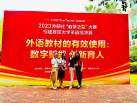 2023年外研社“教学之星”大赛福建赛区决赛于6月3日在福建省农林大学举行,我校awc777万象城娱乐官网胡豫团队(胡豫、赵励轩、何兰、陈立珍)获得了大学英语组三等奖的优秀成绩。