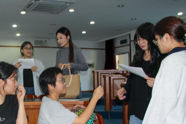 宣讲结束后,应聘者们递交了双语简历,明达公司的客服培训师和人力资源主管当场对学生进行全英面试。