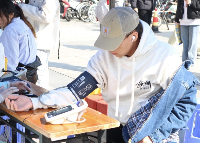 献血活动于早上10点准时开始。活动现场的气氛热情高涨,同学们积极参与其中。前来献血的同学在志愿者的引导下填写个人基本信息表和健康征询表后来到体检区,进行测血压、测血型等检查。志愿者们分工明确,耐心专业地为同学们讲述献血注意事项,解答疑问,消除了他们对献血的误解和顾虑。