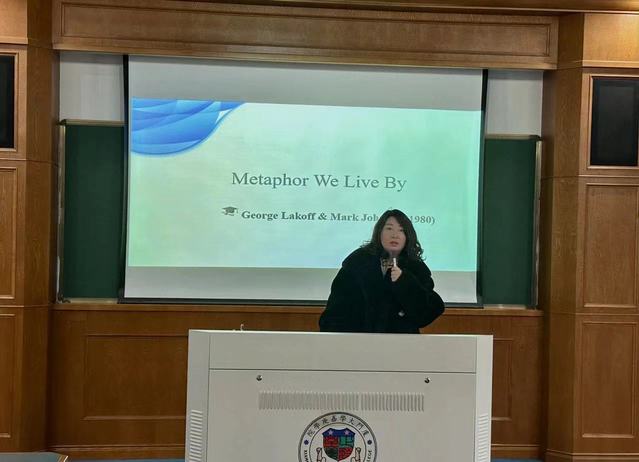 首先,王迪老师进行了认知语言学中的重要观点介绍,列举了embodiment, categorization, image schemes等概念,并结合本书,重点强调了其中的conceptual metaphor和conceptual metonymy的概念。接着王老师展示了书中主要的观点,即比喻对于大多数人来说是产生诗意的想象,以及丰富修辞性手段的工具;比喻在日常生活中很常见;人类的思想过程在很大一部分上是比喻性的。王老师还援引了其他隐喻相关文献,并展示了国内隐喻相关主题核心论文的发表年度分布,从语言学研究的视角再次审视了这本书。