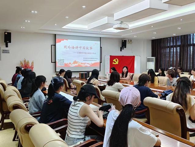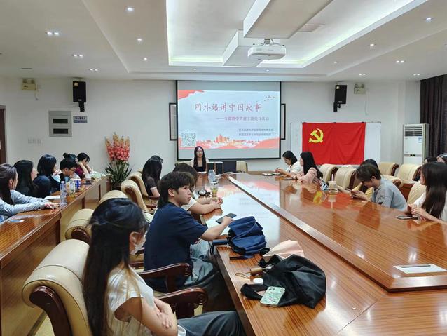 活动开始,两位学生党支部书记分别介绍了本支部党员近年参与外语及“双创”竞赛的成果,她们表示,近年“用外语讲好中国故事”已经成为外语专业学生和从业人员的时代命题,作为外语专业学生应该更加积极地参与相关实践中。