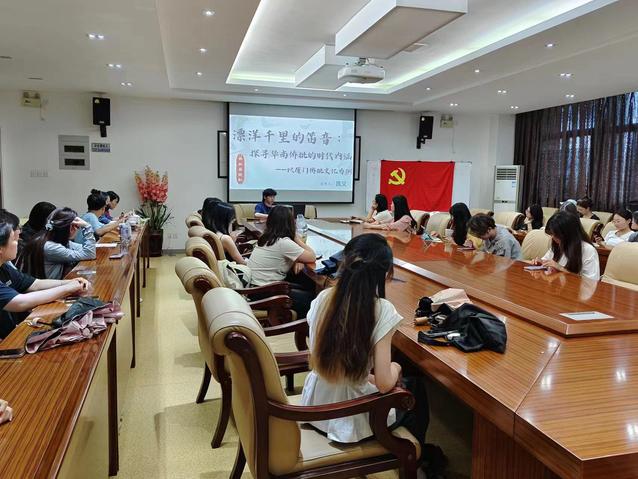 awc777万象城娱乐官网学生党支部陈义以“漂洋千里的笛音:探寻华南侨批的时代内涵—以厦门侨批为例”为主题,介绍了其实践队参与暑期“三下乡”社会实践,走访厦门、泉州等地,挖掘侨胞海外奋斗史,调研侨批文化的时代内涵。同时,他们积极探索,利用社交媒体实现有效推广,让侨批文化走进校园,让更多人了解侨批,增加民族自豪感和爱国爱家情怀。这一项目参与第十六届“挑战杯”福建省大学生课外学术科技作品竞赛“红色专项”,获得省级三等奖。